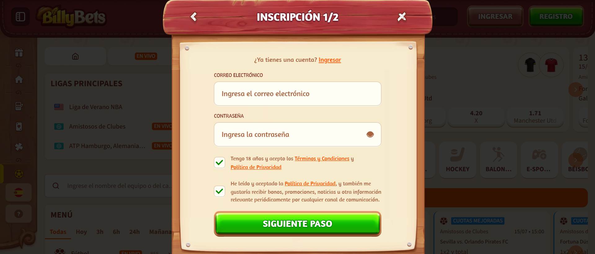 Para comenzar la aventura del juego en Billybets es necesario que cumplas con el proceso de creación de cuenta. Si sigues los siguientes pasos, este proceso no llevará más que unos pocos minutos.